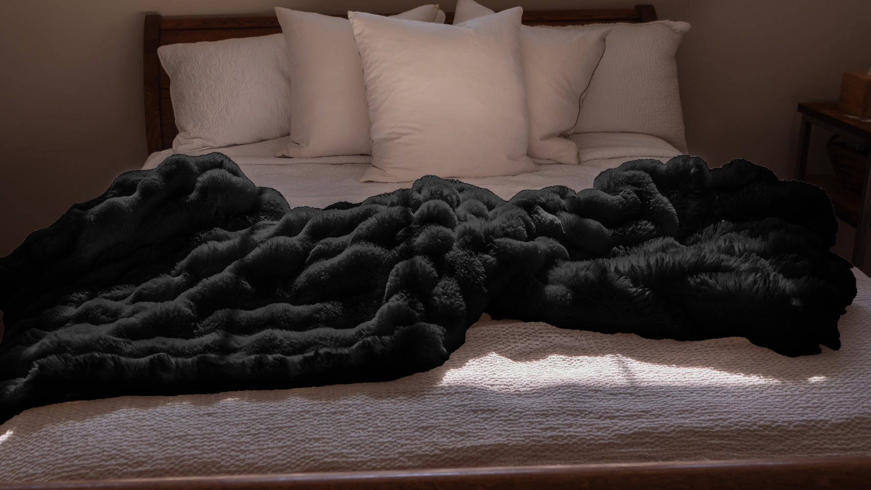 The Cuddle Obsidian Black blanket delivers expert comfort with its soft, durable fabric and sleek design, providing lasting warmth and a sophisticated touch to any space.